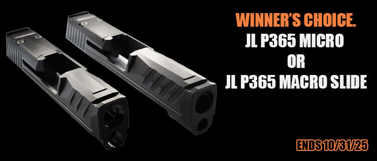 We’re giving you the chance to win a FREE JL Billet P365 Aftermarket slide—crafted from precision-machined 416 stainless steel for unmatched strength and style. The lucky winner will get to choose between our Micro or Macro slide length, available in either a sleek Black Nitride finish.
